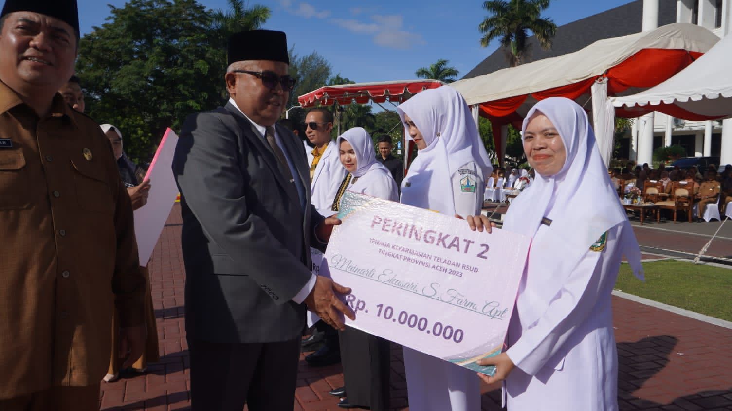 Penghargaan tersebut diberikan Pemerintah Aceh kepada para Nakesdan yang telah lolos seleksi, bertepatan pada upacara peringatan Hari Kesehatan Nasional (HKN) ke-59, yang dilaksanakan 13 November 2023 lalu di Halaman kantor Gubernur Aceh.