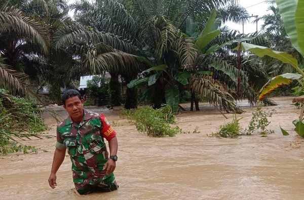 Untuk perkembangan situasi akibat meluapnya kembali air sungai sampai saat ini masih dimonitor oleh Babinsa dari Koramil Simpang Jernih di beberapa Desa yang rawan banjir.