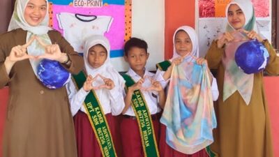 “Dengan adanya program Adiwiyata, 5R di sekolah kami khususnya Reuse, produk pakaian yang tadinya sudah tidak dipakai dapat dimanfaatkan menjadi produk dengan tampilan baru. Salah satu yang sudah kami lakukan adalah memanfaatkan hasil ecoprint dan batik jumputan pada jilbab. Jilbab tersebut juga dikenakan oleh staf guru di SDN 067256 MEDAN. Kami bangga menggunakan produk dari karya siswa kami sendiri,” tuturnya.