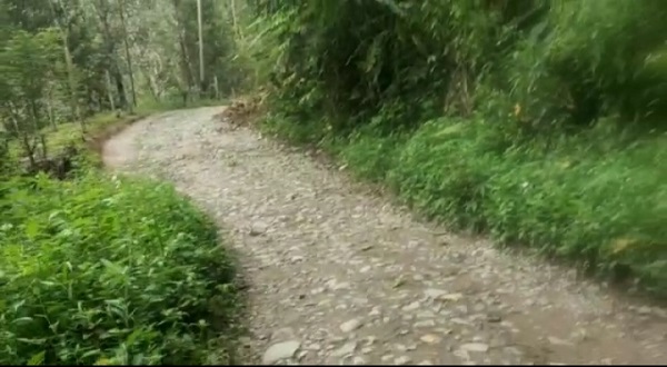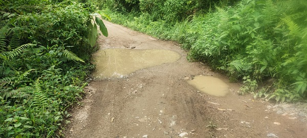 Kondisi ruas jalan semakin hari semakin rusak, sepanjang ruas jalan yang dilewati berlubang dan bebatuan serta berlumpur, sebagian jalan ditutupi semak dan material longsor.