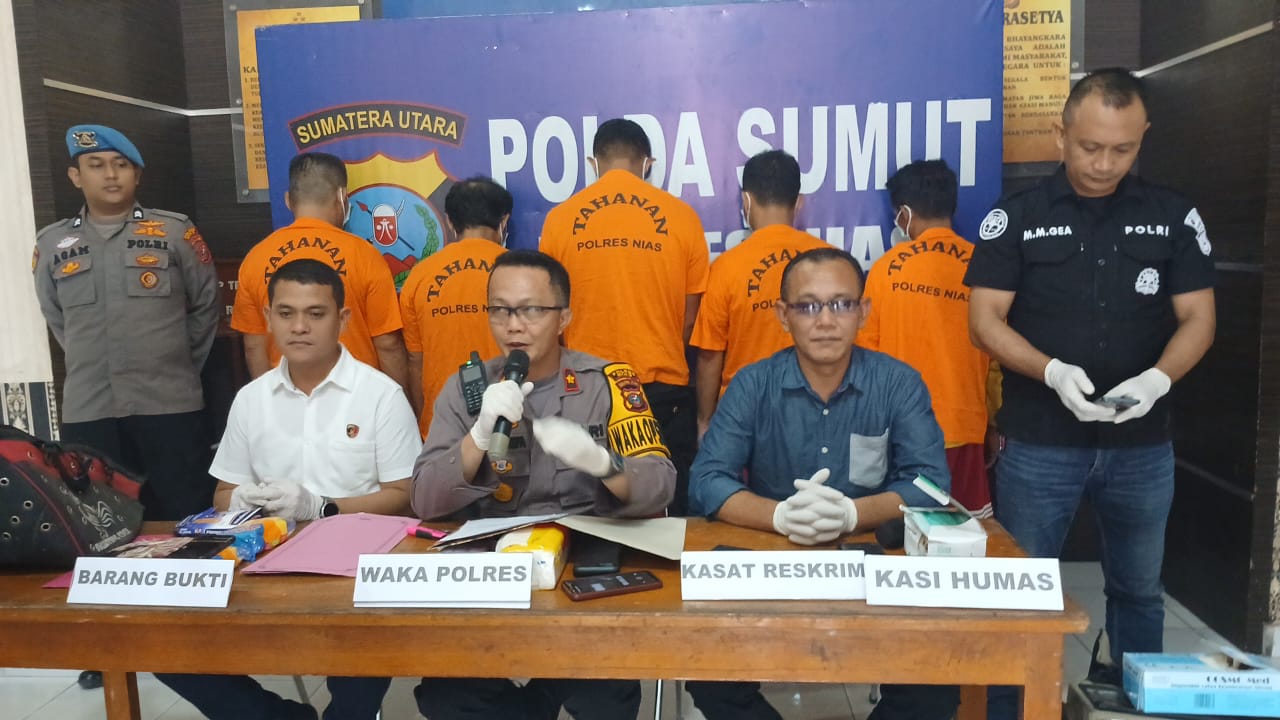 Petugas selanjutnya memboyong ke 8 orang yang diamankan ke Mapolres Nias untuk menjalani pemeriksaan. Dari hasil pemeriksaan akhirnya penyidik menetapkan 5 orang tersangka, sedangkan 3 orang lainnya sebagai saksi.