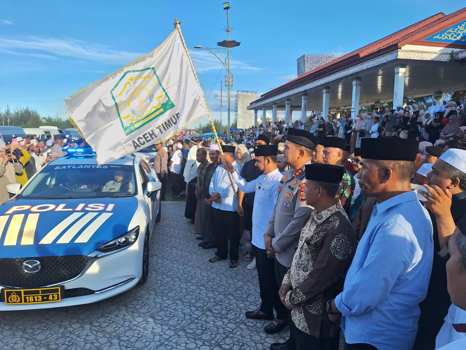 Sementara Bupati Aceh Timur, Iskandar Usman Al Farlaky, S.Hi, M.Si, ketika melepas jamaah calhaj Aceh Timur di Lapangan Upacara Pusat Pemkab Aceh Timur di Idi, Sabtu (17/5) berpesan, jamaah untuk menjaga kekompakan dan kebersamaan selama berada di tanah suci.