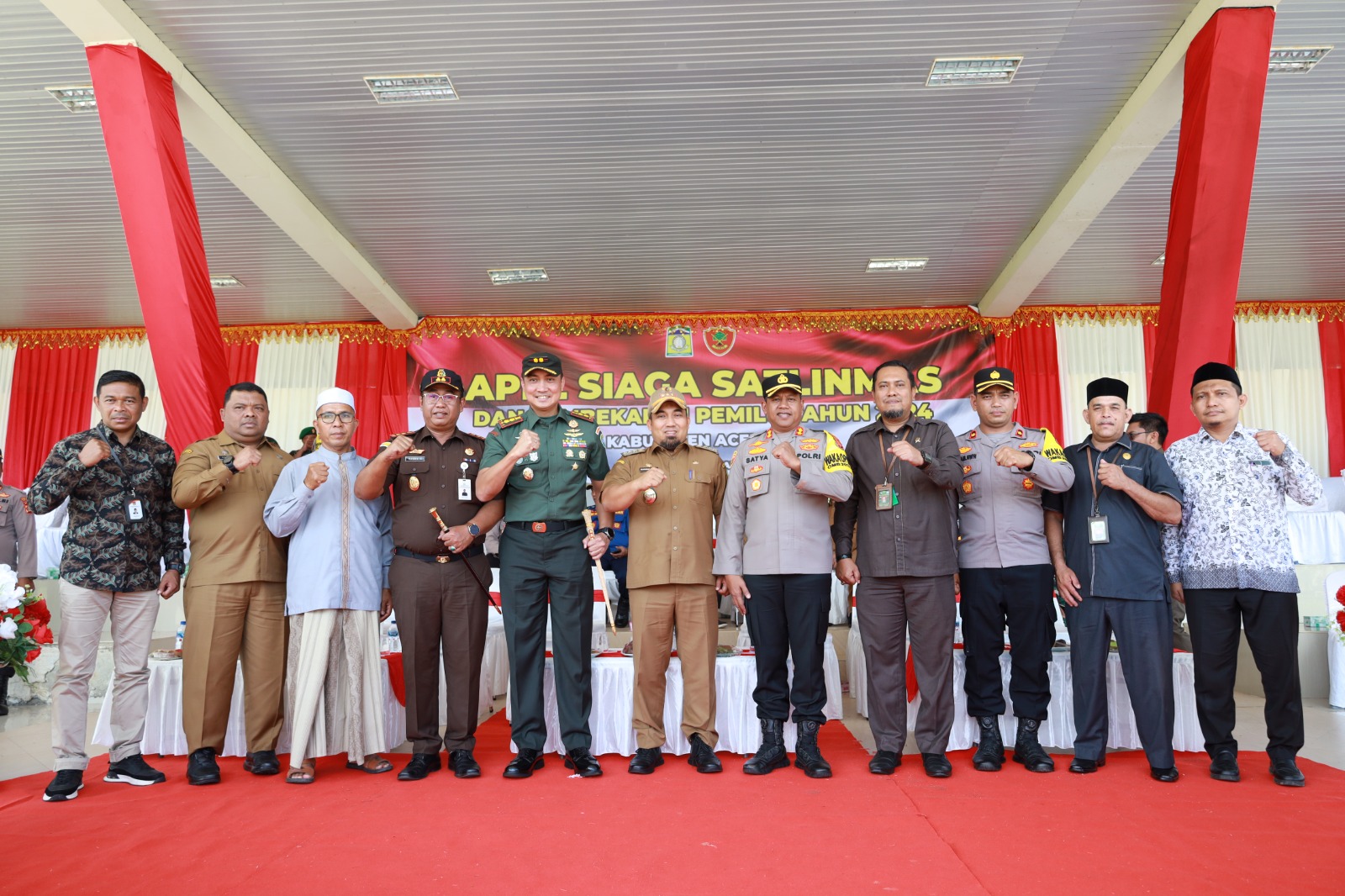 Hadir dalam kesempatan itu, Dandim 0101/KBA Letkol CZI Widya Wijanarko, Kajari Aceh Besar Basril G, Ketua Pengadilan Negeri Jantho Deny Syahputra, Wakapolresta Banda Aceh AKBP Satya Yudha Prakasa, Wakapolres Aceh Besar Kompol Rustam Nawawi, Ketua MPU Aceh Besar Tgk H Nasruddin, Sekdakab Aceh Besar Sulaimi, komisioner KIP Aceh Besar, Panwaslu Aceh Besar, para camat, Kapolsek, Danramil, dan pejabat OPD terkait.