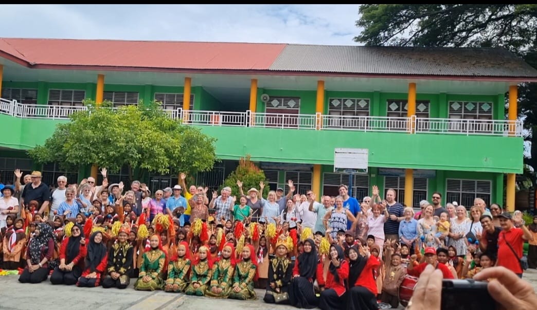 Pengamatan Waspada di Sabang pelancong kapal pesiar yang tergolong orang lansia itu sangat senang menyaksikan atraksi yang ditampilkan anak-anak murid SDN 1 Sabang. (b18)