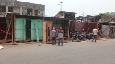 Pengamatan Waspada, Kamis (14/9), tampak puluhan kios di bagian depan dan belakang di lokasi tersebut sudah dibongkar rata dengan tanah hanya menyisakan puing-puing sisa material bangunan kios. Selain itu, pemilik/penghuni yang kiosnya sudah dibongkar tampak mendirikan kios darurat untuk tempat berjualan.