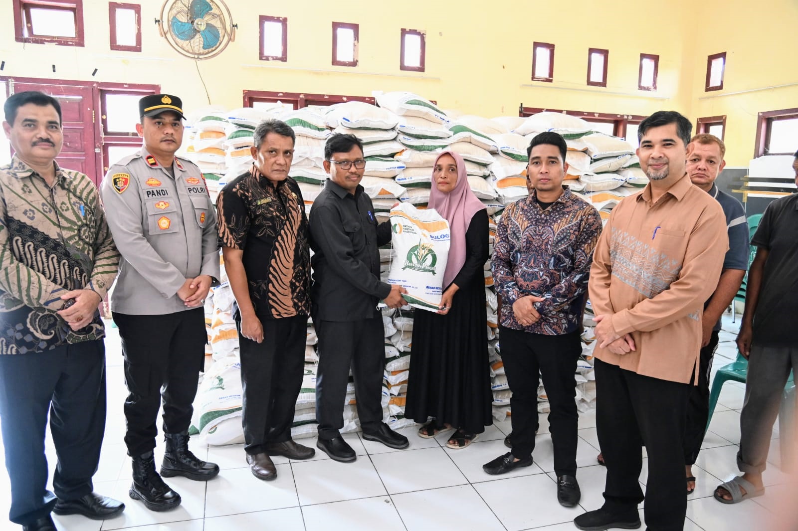 KOTA JANTHO (Waspada): Pemerintah Kabupaten (Pemkab) Aceh Besar menyalurkan bantuan beras cadangan pangan pemerintah tahap II tahun 2024 dari Pemerintah Pusat untuk 1.258 Keluarga Penerima Manfaat (KPM) di Kecamatan Krueng Barona Jaya (KBJ), di Aula Kantor Camat KBJ, Aceh Besar, Kamis (29/2).