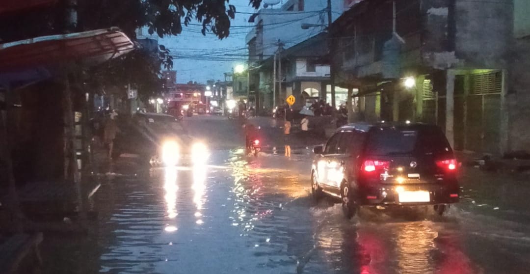 Bahkan, air banjir juga sudah mengalir masuk menggenangi badan jalan Sutoyo, A.Yani dan Ade Irma Suryani di Kota Kualasimpang.