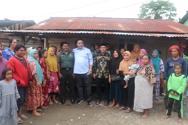 KUTACANE (Waspada): Politisi Partai Golkar, H. M. Salim Fakhry, SE, MM yang juga anggota Komisi IV DPR RI peduli dan mengunjungi sejumlah lokasi korban angin puting beliung di Kabupaten Aceh Tenggara, Rabu (1/3).