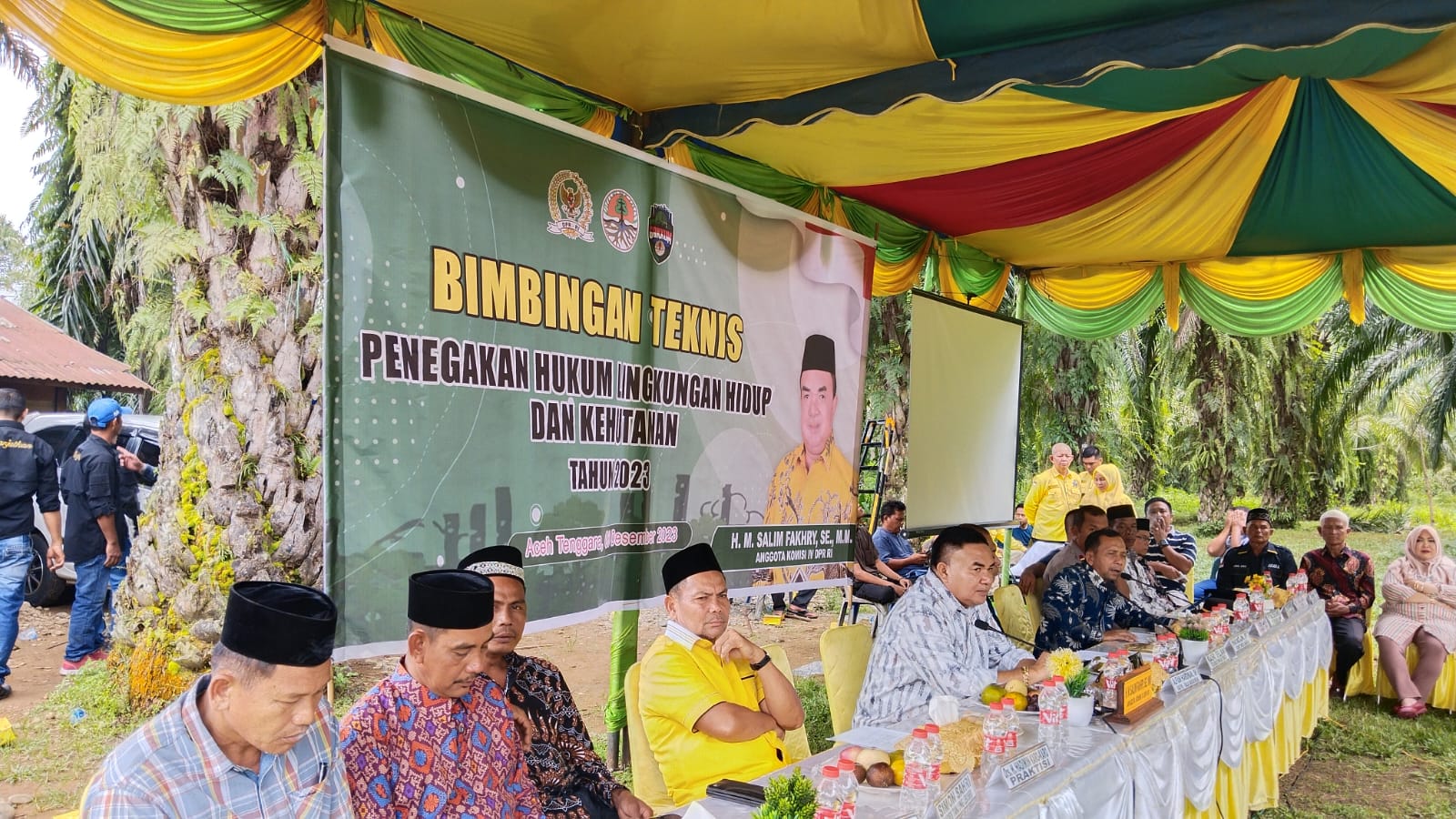 Seusai meninjau lokasi pasca banjir bandang, Salim Fakhry beserta rombongan langsung menuju ke Desa Tanjung Lama di Kecamatan Darul Hasanah Aceh Tenggara dalam rangka membuka acara Bimbingan Teknis (Bimtek) Penegakan Hukum Pelestarian Hutan yang diselenggarakan oleh Menteri Lingkungan Hidup Kehutanan Republik Indonesia melalui Direktorat Jenderal wilayah 1 Sumatera Utara yang diikuti peserta terdiri dari ratusan warga petani.