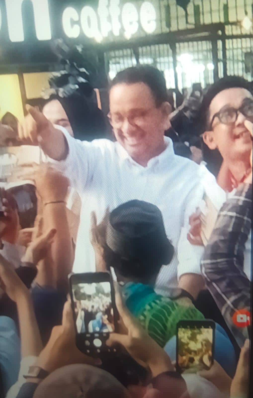 LANGSA (Waspada): Capres Nomor 1, Prof Dr Anies Rasyid Baswedan menyapa ribuan warga Kota Langsa untuk sebuah tujuan yakni perubahan di Cafee Oregon persis di Taman Bambu Runcing Langsa, Minggu (17/12) petang.