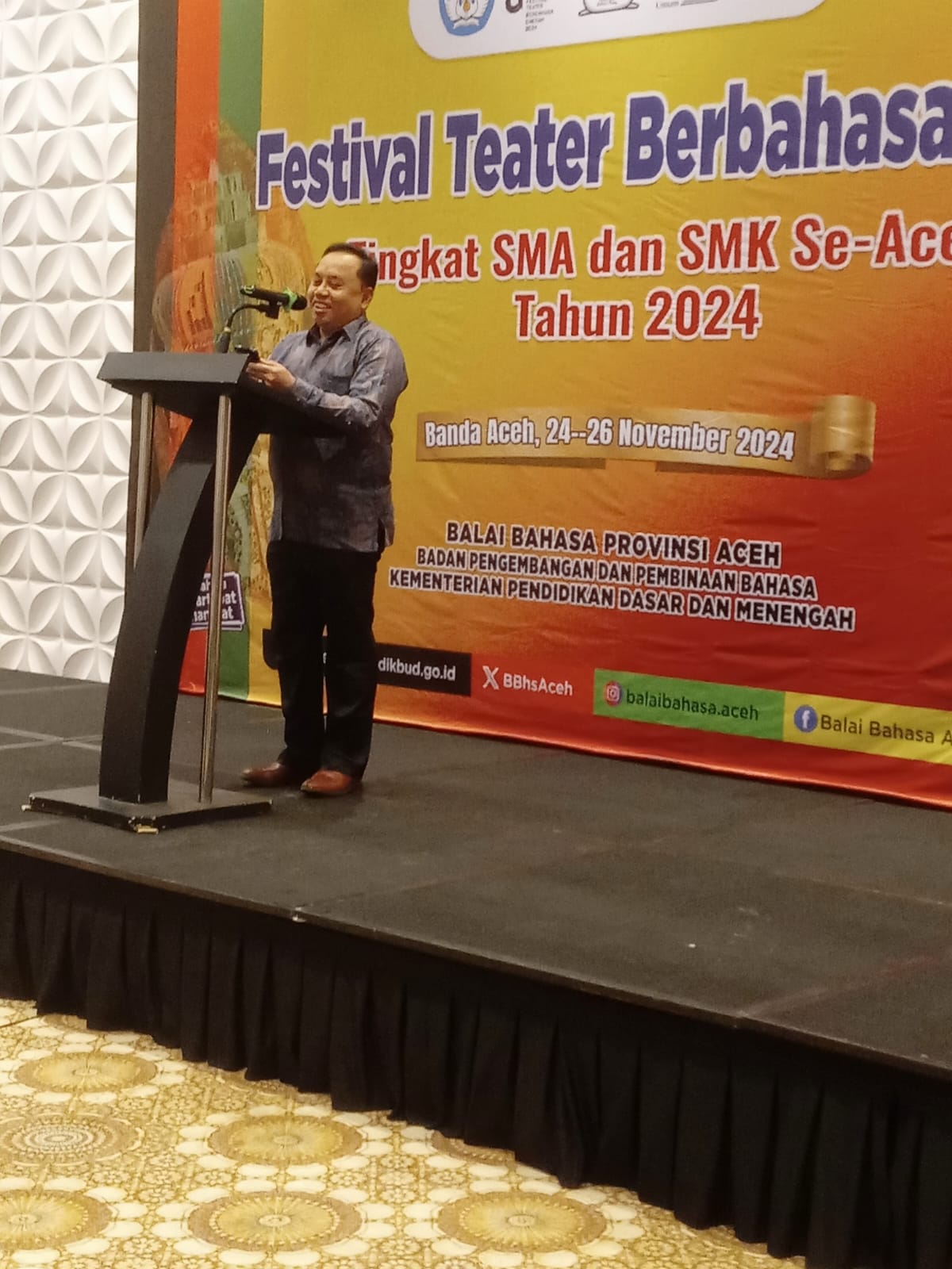 BANDA ACEH (Waspada): Sebanyak 190 peserta dari 19 sekolah tingkat SMA dan SMK se Aceh ambil bagian pada acara Festival Teater Berbahasa Aceh (FTBA) yang digelar oleh Balai Bahasa Aceh, di Hotel Ayani Peunayong, Banda Aceh, Minggu (24/11/24) malam.