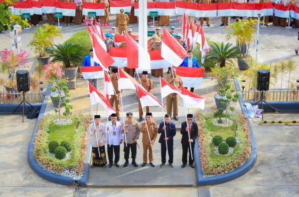 Pada momen apel gabungan ASN Pemko Banda Aceh tersebut, Pj Wali Kota Amiruddin bersama Ketua DPRK Farid Nyak Umar, Kapolresta Kombes Pol Fahmi Irwan Ramli, dan unsur forkopimda lainnya menyerahkan secara simbolis bendera merah putih kepada para camat dan perwakilan KNPI.
