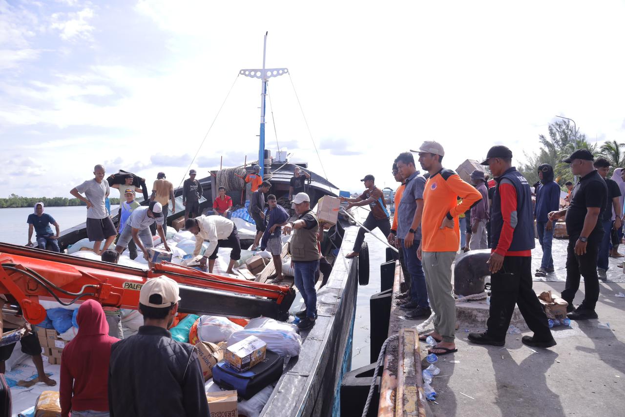 Proses pembongkaran bantuan dimulai pada Minggu siang. Bantuan tersebut akan dibagi dan disalurkan ke tiga kabupaten/kota terdampak bencana, sehingga memerlukan pengaturan distribusi yang matang.