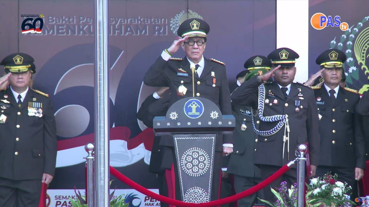Upacara Peringatan Hari Bhakti Pemasyarakatan Kemenkumham RI Ke-60 Tahun 2024, secara langsung dilaksanakan di Lapangan Upacara Kementerian Hukum dan HAM RI.
