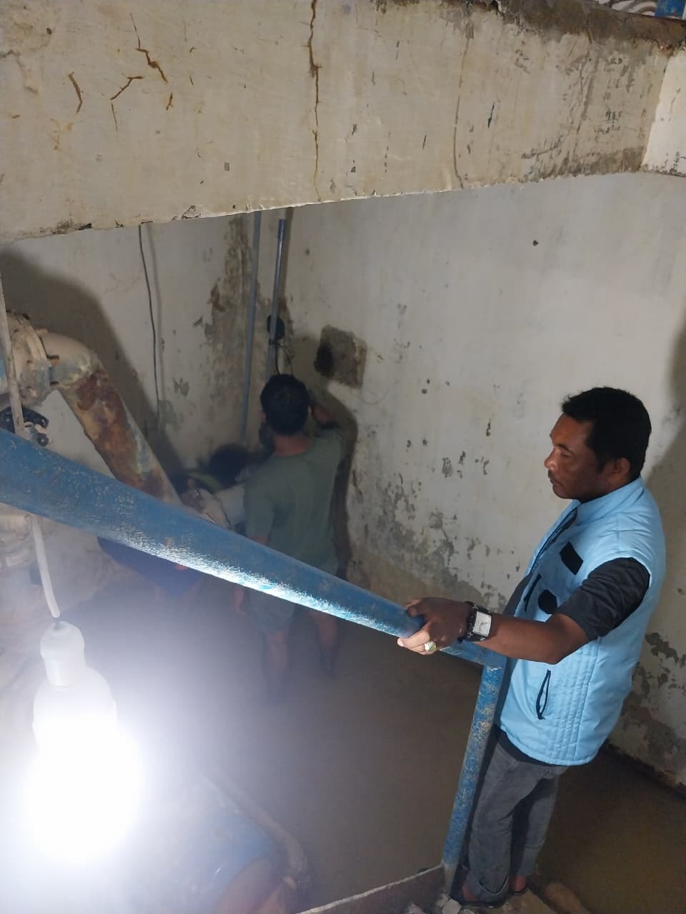 Kemudian, masalah besar tidak hanya terjadi di hulu. Kerusakan parah juga terjadi di Station Booster Pump di setiap Unit Pelayanan kecamatan, yakni Pompa booster terendam banjir, Panel listrik rusak, rumah pompa dipenuhi genangan air, karena Rumah pompa yang lokasinya dibuat sejajar atau terhubung langsung dengan in-ground reservoir (reservoir dalam tanah). Ruang pompa bawah tanah sering menjadi titik terendah, Air banjir masuk melalui saluran, dinding, celah pipa, dan ventilasi, Sehingga ruang pompa terendam 100% dan Reservoir penuh lumpur dan sampah.