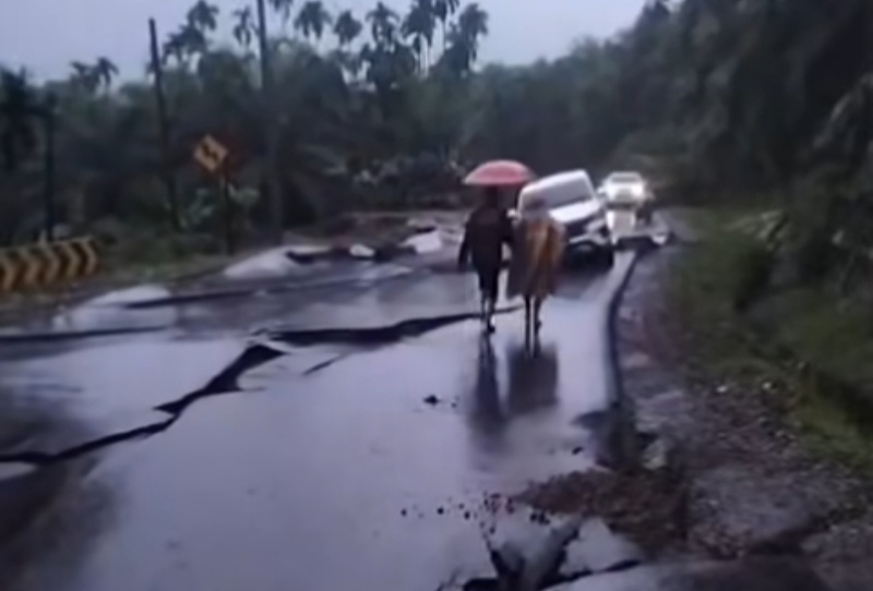 Kasat Lantas Polres Bireuen, Iptu Aditya , saat dikonfirmasi Waspada.id mengatakan, akibat hujan deras yang melanda Bireuen, Jalinsum di kilometer 16 arah ke Aceh Tengah (Takengon) retak. Air sungai di Teupin Mane Kecamatan Juli tinggi dan alirannya juga deras.