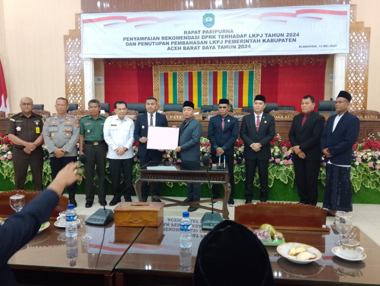 Hal itu ditegaskan Bupati Safar dalam sidang paripurna penyampaian rekomendasi DPRK, terhadap LKPJ Abdya tahun 2024, serta paripurna penutupan pembahasan LKPJ Abdya tahun 2024, di gedung DPRK, kompleks perkantoran Bukit Hijau, Blangpidie. Rabu (14/5), yang dipimpin Ketua DPRK Abdya Roni Guswandi SPI. Dihadiri unsur Forkopimkab, Sekda, para Asisten, para Staf Ahli, para Kepala SKPK dan unsur terkait lainnya.