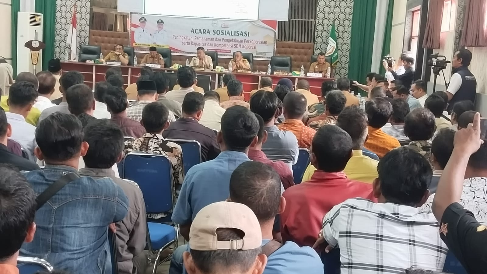 KUTACANE (Waspada.id): Pemerintah Kabupaten Aceh Tenggara (Agara) melalui Dinas Koperasi, Usaha Kecil Menengah dan Transmigrasi menggelar kegiatan sosialisasi peningkatan pemahaman dan pengetahuan perkoperasian serta kapasitas dan kompetensi SDM koperasi berlangsung di Oproom Setdakab, Senin (7/10).