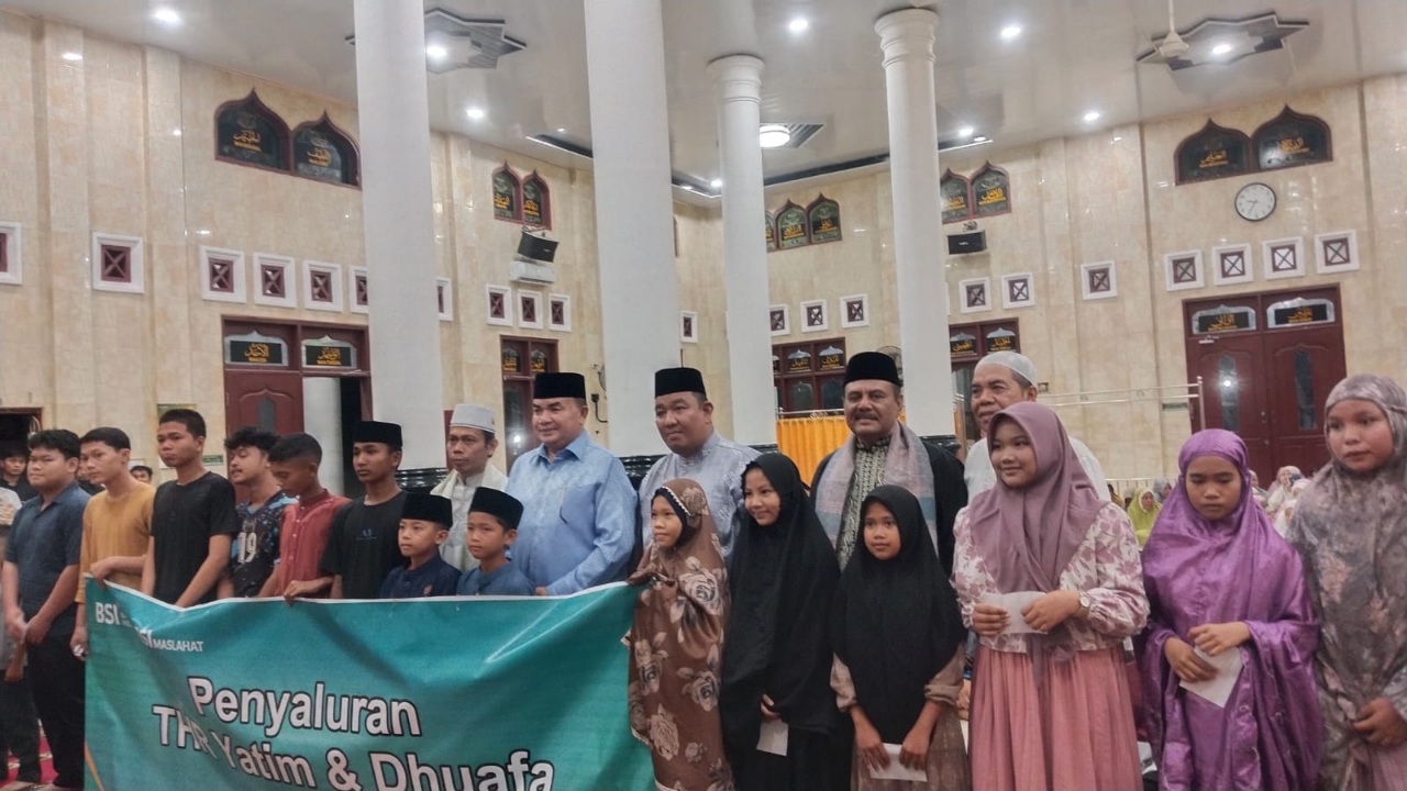 KUTACANE (Waspada.id): Bupati Aceh Tenggara, HM Salim Fakhry, SE, MM dan Wakil Ketua DPR Aceh, Ali Basrah, S. Pd, MM menghadiri penyerahan hadiah berbagai lomba Ramadan 1447 Hijriah tingkat SD dan SMP menjalang malam Nuzulul Qur’an sekaligus penyaluran THR unruk yatim dan duafa di Masjid Syuhada Desa Pulonas, Minggu (15/3) malam.