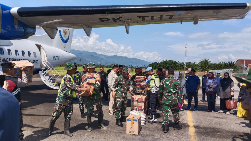 KUTACANE (Waspada.id): Satgas Kementerian Kelautan dan Perikanan (KKP) Republik Indonesia salurkan bantuan bencana di Kabupaten Aceh Tenggara melalui pesawat di Bandara Alas Leuser, Jumat (5/12).
