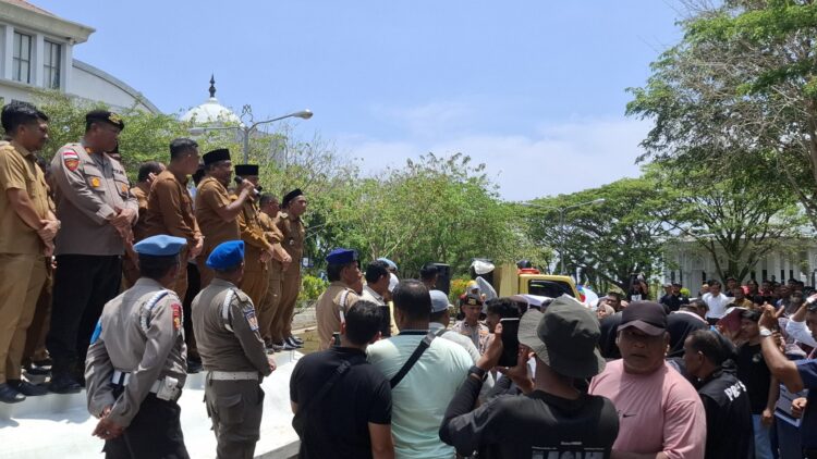 “Beri kami waktu lima hari untuk duduk bersama dan menindaklanjuti semua poin yang ada,” ujar Mukhlis di hadapan massa.