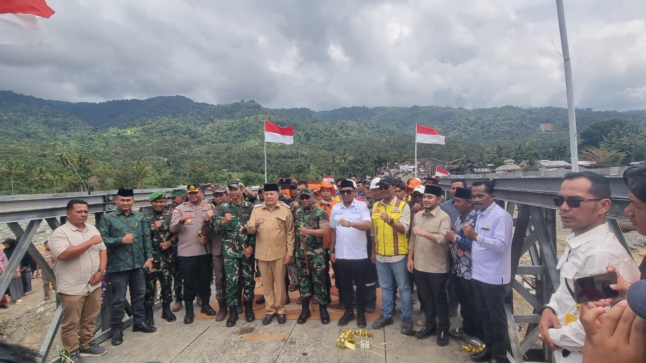 Jembatan Bailey ini dibangun sebagai upaya pemulihan infrastruktur pasca bencana hidrometeorologi yang terjadi pada November 2025 lalu, yang sempat merusak akses penghubung vital antara dua kabupaten tersebut dan berdampak pada mobilitas serta perekonomian masyarakat.