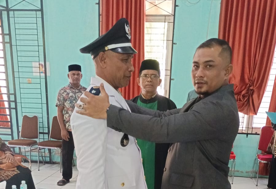 KOTA JANTHO (Waspada.id): Camat Darul Imarah, M Basir melantik dan mengambil sumpah jabatan Keuchik (kepala desa) Pergantian Antar Waktu (PAW) Gampong (desa) Deunong, Muhammad Hasyem, di Aula UDKP Darul Imarah, Kabupaten Aceh Besar, Kamis (16/4/2026).
