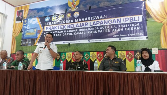 KOTA JANTHO (Waspada.id): Camat Darul Kamal, Husaini ajak mahasiswa Praktik Belajar Lapangan (PBL) dari Akademi Keperawatan Kesdam Iskandar Muda Banda Aceh (AKIMBA) untuk hadir lebih dekat dengan masyarakat selama menjalankan tugas di wilayahnya. Ajakan tersebut disampaikan dalam serah terima mahasiswa PBL yang berlangsung di Kantor Camat Darul Kamal, Rabu (1/4/2026).