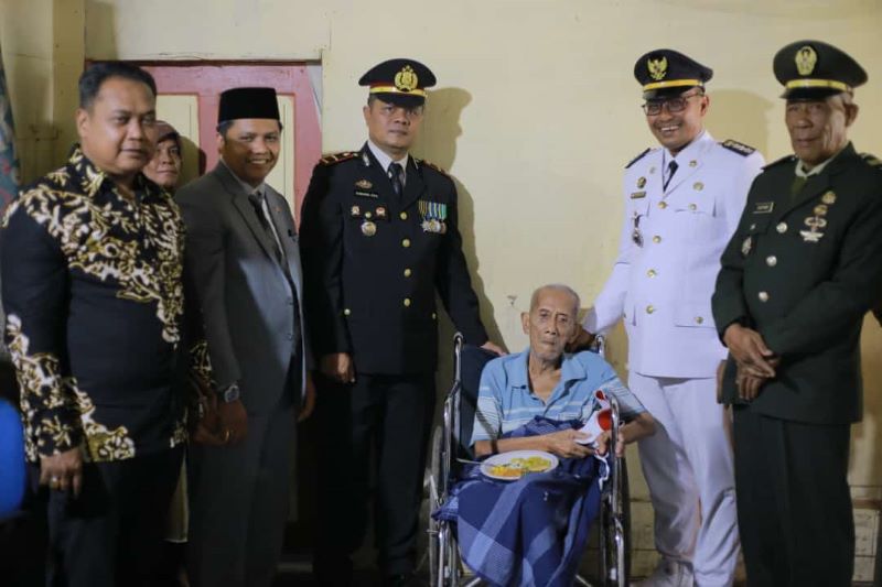 Usai upacara, Camat Ns Salviar Evi mengunjungi rumah veteran di Kecamatan Seunagan Timur sekaligus memberikan hadiah.