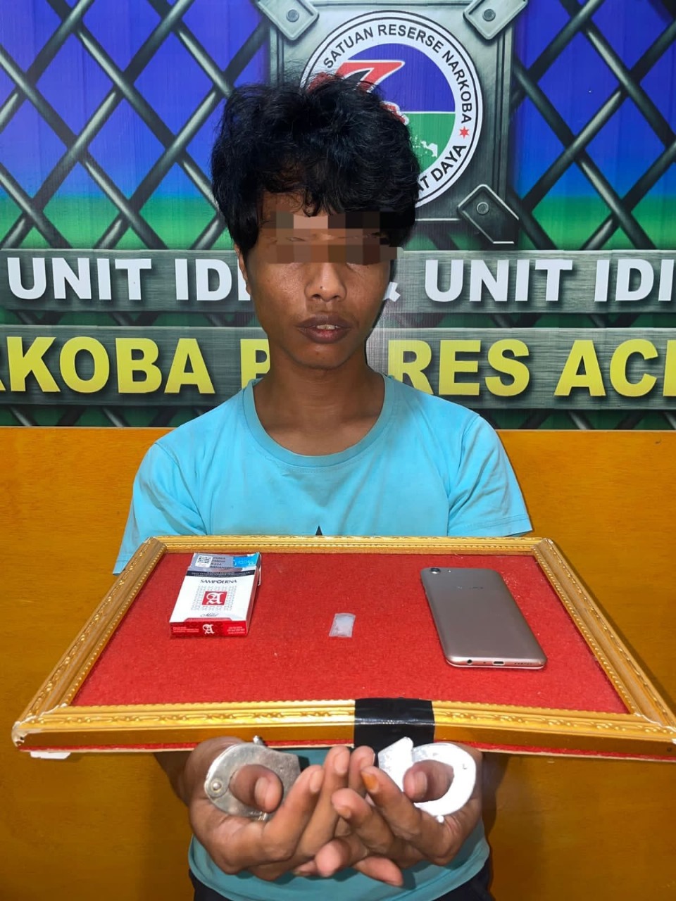 Penangkapan pertama kata Kasat Hengki, dilakukan sekitar pukul 22.00 WIB. Di TKP ini, petugas berhasil meringkus seorang oknum karyawan swasta inisial TBP (29 tahun), warga Desa Pawoh, Kecamatan Susoh. TBP diringkus petugas saat sedang duduk di sebuah pondok di pinggir jalan. Saat digeladah, petugas menemukan satu bungkus sabu seberat 0,49 gram bruto, yang disembunyikan dalam bungkus rokok, yang langsung diamankan petugas, berikut barang bukti lainnya, berupa satu unit telepon genggam milik terduga.