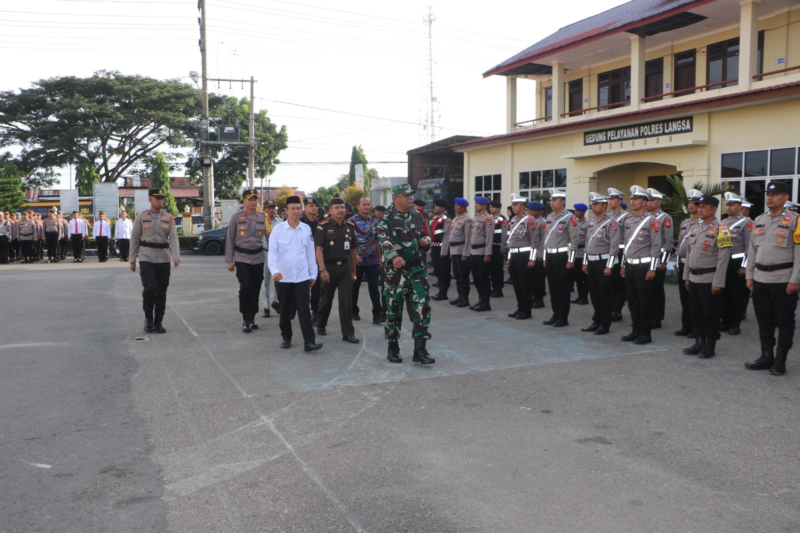 Hadir Kapolres Langsa, AKBP Andy Rahmansyah, SIK. SH. MH, Wakapolres, Kompol Dheny Firmandika, S.Ab., S.I.K, forkopimda, personel TNI/Polri, Satpol PP dan instansi terkait lainnya.