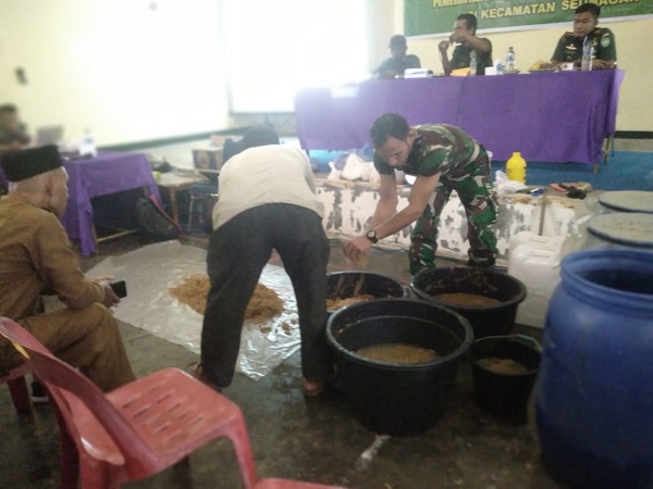 Dalam sosialisasi tersebut juga diberikan cara pembuatan pangan seperti mengisi pupuk dan air. Selain itu juga dilakukan praktik pembuatan pakan rumanansia (sapi, kambing dan kerbau), sekam padi 70 persen, bungkil inti sawit/ampas tahu/bungkil kedelai/ampas kelapa 25 persen, dedak halus 3 persen, mineral (tepung) 1 persen, vitamin 1 persen, Roter 100 mll dan gula merah ½ kg.
