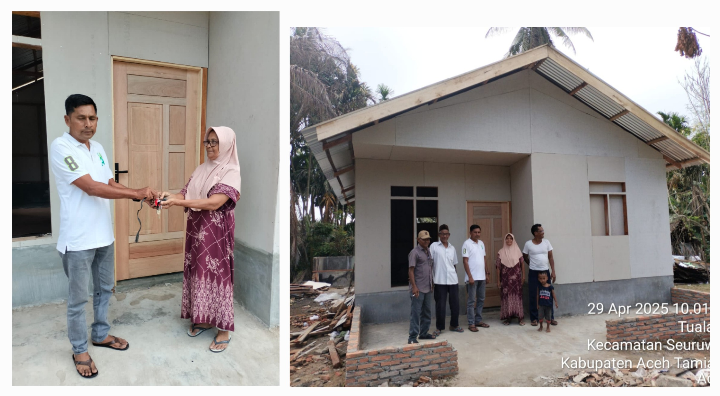 Proses penyerahan kunci rumah Darmawati, Dusun Tani, Kampung Tualang pada Selasa (29/4) tersebut dilakukan langsung oleh Datok Syafi’i bersama perangkat kampung serta tokoh masyarakat setempat.