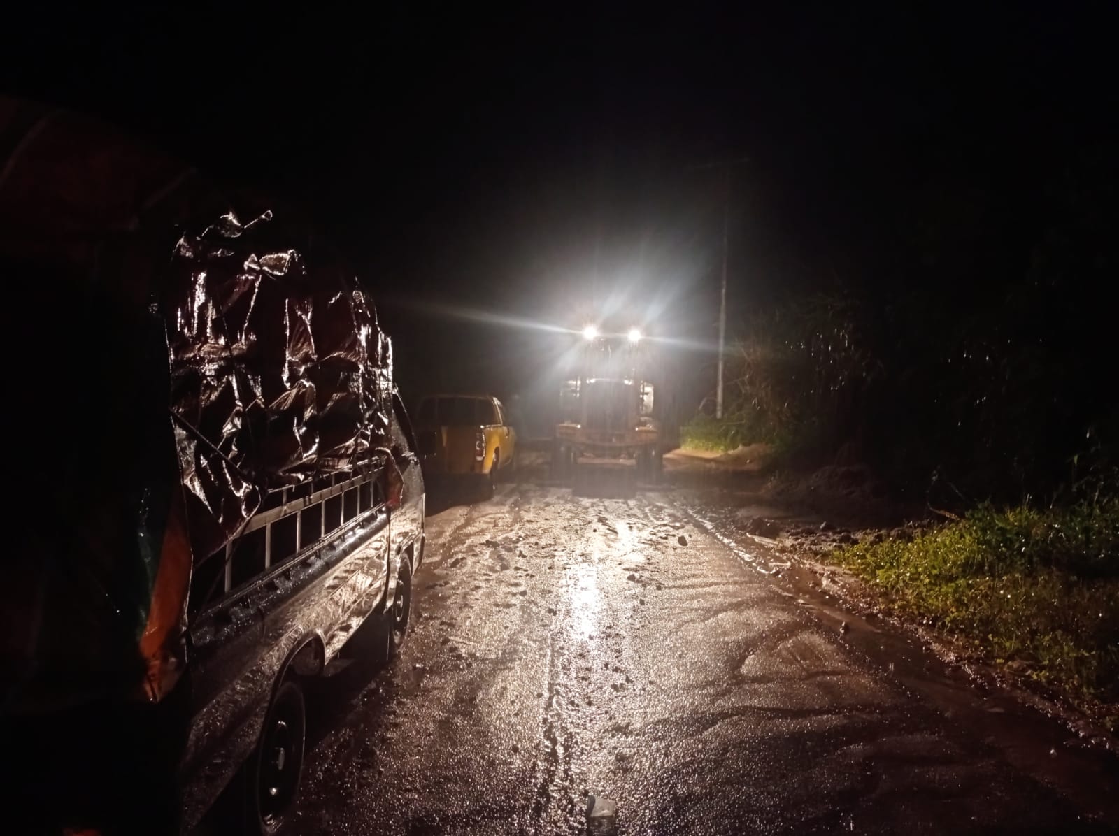 Informasi dari warga di sekitar lokasi, kerikil bercampur lumpur turun dari kawasan dan membuat hubungan dua kabupaten bertetangga tersebut putus, karena tebalnya material menutupi ruas jalan nasional tersebut yang terjadi sejak pukul 19:00 WIB, didahului dengan guyuran hujan lebat di kawasan Kecamatan Putri Betung.