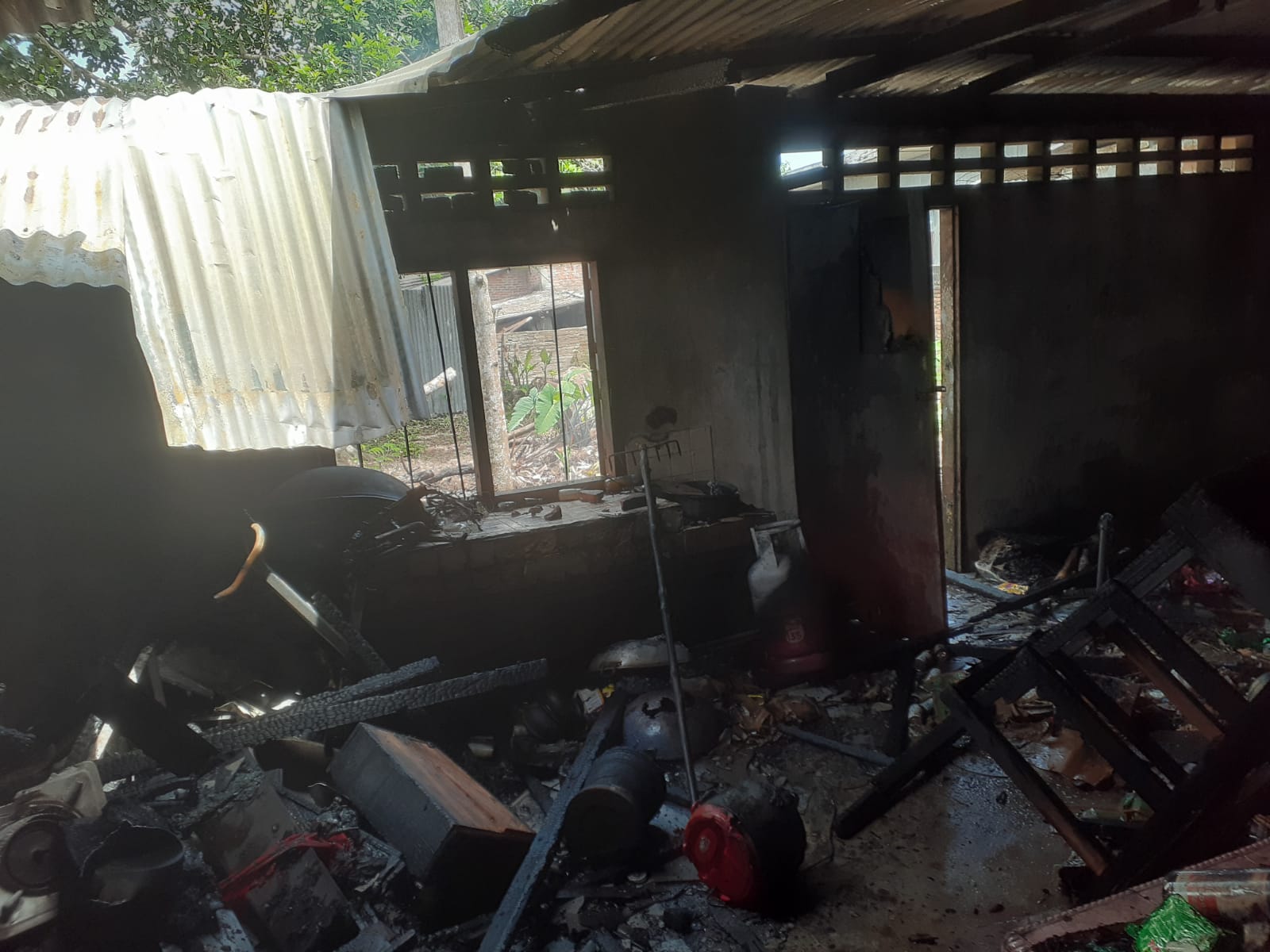 Sementara api berhasil dipadamkan sekira pukul 11:20, namun bagian ruang dapur rumah korban habis terbakar, sedangkan ruang lainnya belum terbakar dikarenakan pihak BPBD, Polri Dan TNI beserta masyarakat dengan sigap memadamkan kebakaran tersebut.