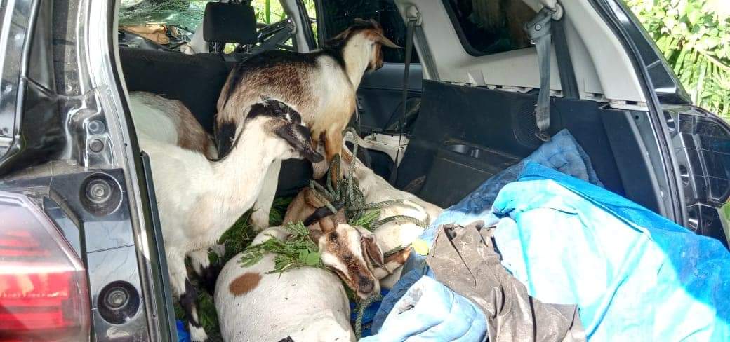 Pantauan Waspada, pasca kejadi kecelakaan tersebut sejumlah warga yang melihat persitiwa itu mendekati mobil SUV Toyota Terios yang ternyata di dalamnya terdapat sejumlah ekor ternak Kambing. Hewan ternak Kambing tersbut mulutnya diikat. (b06)