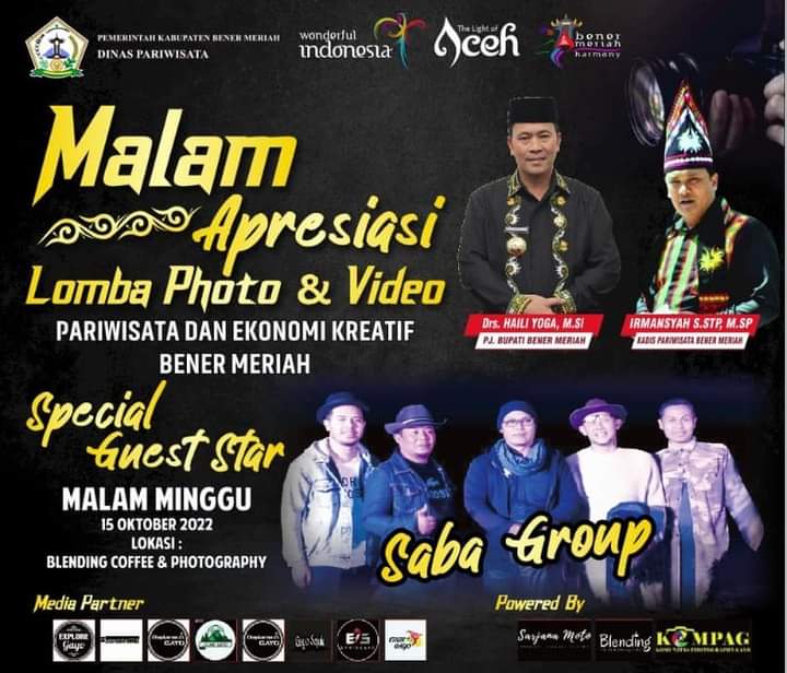 Malam Apresiasi Foto dan Video Pariwisata dan Ekonomi Kreatif Bener Meriah Tahun 2022 ditutup dengan pertunjukan dari band legendaris Gayo, Saba Group.