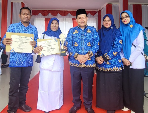 Selanjutnya, sertifikat penghargaan kepada Nakes yang rutin bertugas atas nama, Rosita Astuti, dan penghargaan honorer terlama, atas nama Sultan Alam, sertifikat penghargaan desa yang sudah open defication prestasi (Odf) bagi 29 desa yang bebas jambanisasi. (cseh)