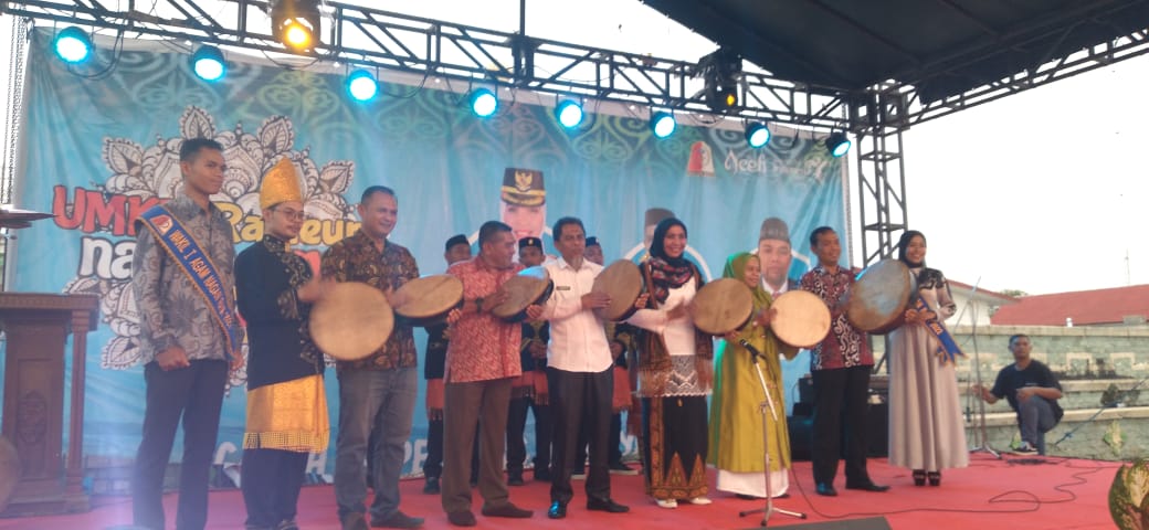 Pembukaan expo itu ditandai dengan penabuhan rapa’i, salah satu adat di Aceh yang langsung dilakukan Pj. Bupati didampingi Forkopimda.