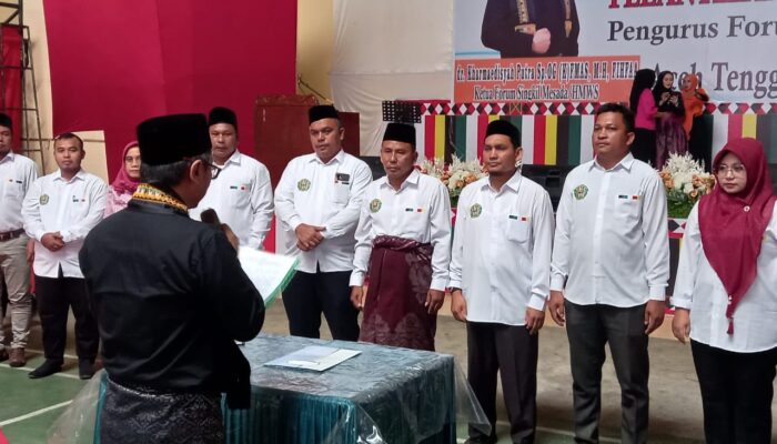 KUTACANE (Waspada): dr. H. Kharmaedisyah Putra, SpOG (K),M.H, FMAS,FIHFAA, dikukuhkan menjadi Ketua Forum Singkil Mesada Kabupaten Aceh Tenggara periode 2023-2027 di Gedung Olahraga Kutacane, Minggu (8/10).
