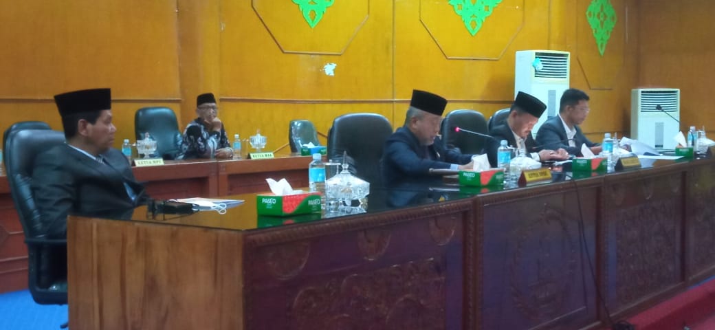 Pentauan Waspada, DPRK Aceh Tamiang menggelar sidang paripurna di Ruang Rapat Utama DPRK Aceh Tamiang, Selasa (27/6) yang dihadiri Ketua DPRK Aceh Tamiang, Suprianto, Wakil Ketua, Fadlon dan Muhammad Nur serta sejumlah anggota dewan setempat dan undangan lainnya.