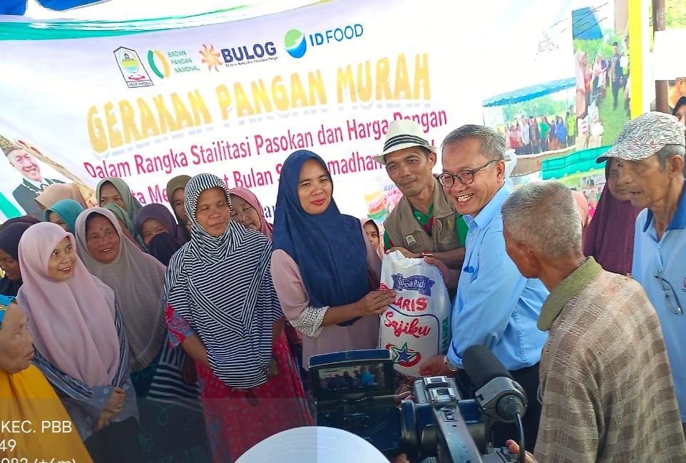 Kemudian menjual paket sembako murah, di Desa Suka Makmur Kecamatan PBB sebanyak 50 paket.