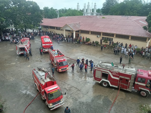 Penanganan pemadam gedung serba guna, ruang aula, CBT Center dan perpustakaan kampus Abulyatama tersebut langsung dipimpin Kepala Pelaksana Badan Penanggulangan Bencana Daerah (Kalaksa BPBD) Aceh Besar, Ridwan Jamil.