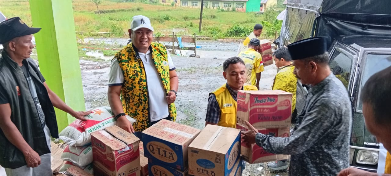 Jalanan yang licin, pinggir jalan yang tergerus banjir, hingga genangan lumpur yang menutup sebagian badan jalan tidak menyurutkan langkah Ketua DPD II Partai Golkar Pidie, T Saifullah TS, SE, untuk tetap hadir di Gampong Blang Pandak salah satu desa yang terdampak paling parah.