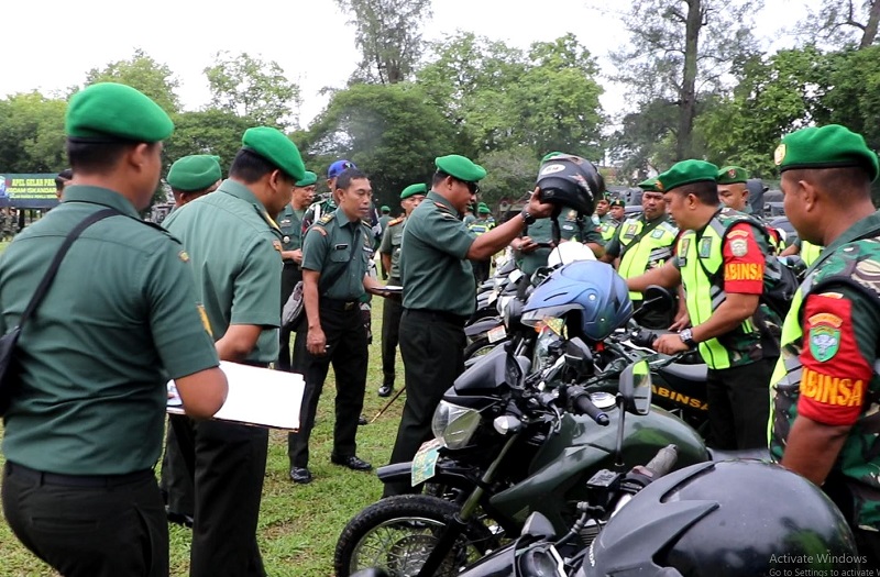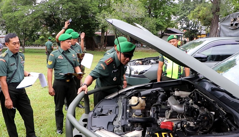 Pengecekan kelengkapan kendaraan dinas (Randis) dipimpin langsung Dandim 0104/Aceh Timur Letkol Inf Tri Purwanto,S.I.P didampingi para perwira staf dan para Danramil.