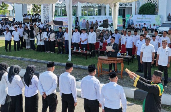 Penyerahan SK dilakukan oleh Bupati Pidie H. Sarjani Abdullah, S.H., M.H., didampingi Wakil Bupati Alzaizi. Dalam sambutannya, H Sarjani menyebut PPPK Paruh Waktu tetap berstatus aparatur sipil negara, memiliki jam kerja fleksibel, serta peluang menjadi PPPK penuh waktu. “SK ini bukan akhir, melainkan awal pengabdian,” ujarnya.