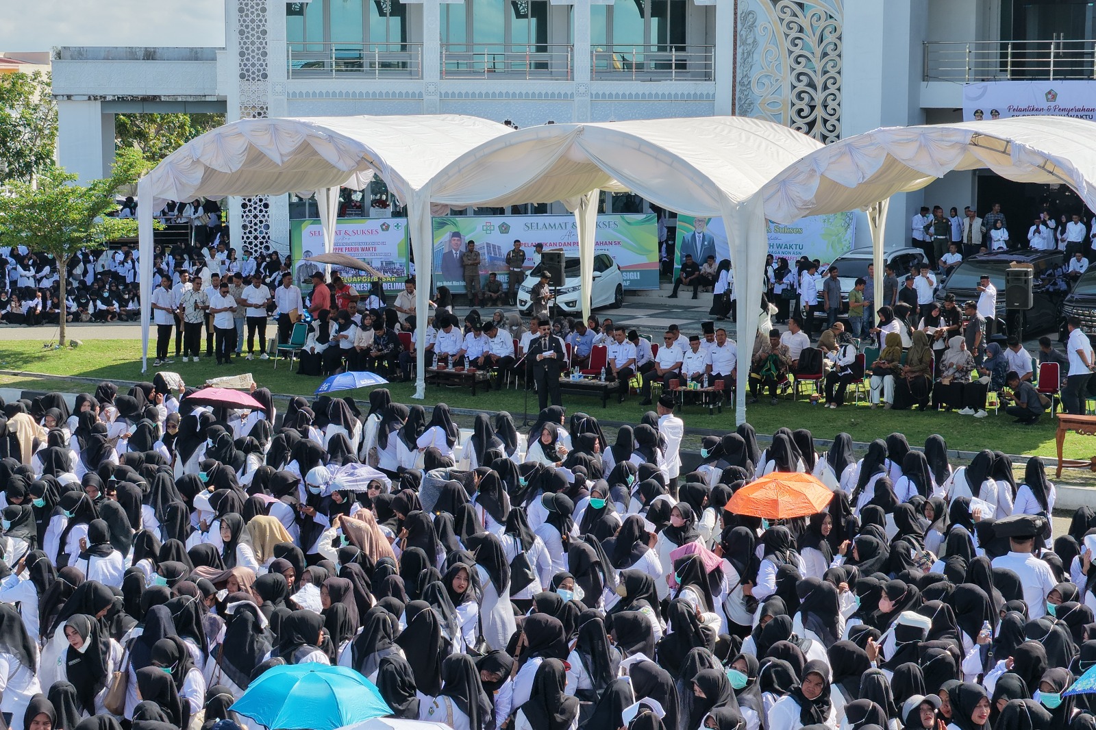 Di barisan depan, Ida Midar AMd. Keb, memegang pulpen. Perawat di Puskesmas Tangse itu diminta menandatangani dokumen secara simbolis. Ia mewakili 7.238 tenaga yang siang itu menerima Surat Keputusan Pengangkatan PPPK Paruh Waktu di lingkungan Pemerintah Kabupaten Pidie.