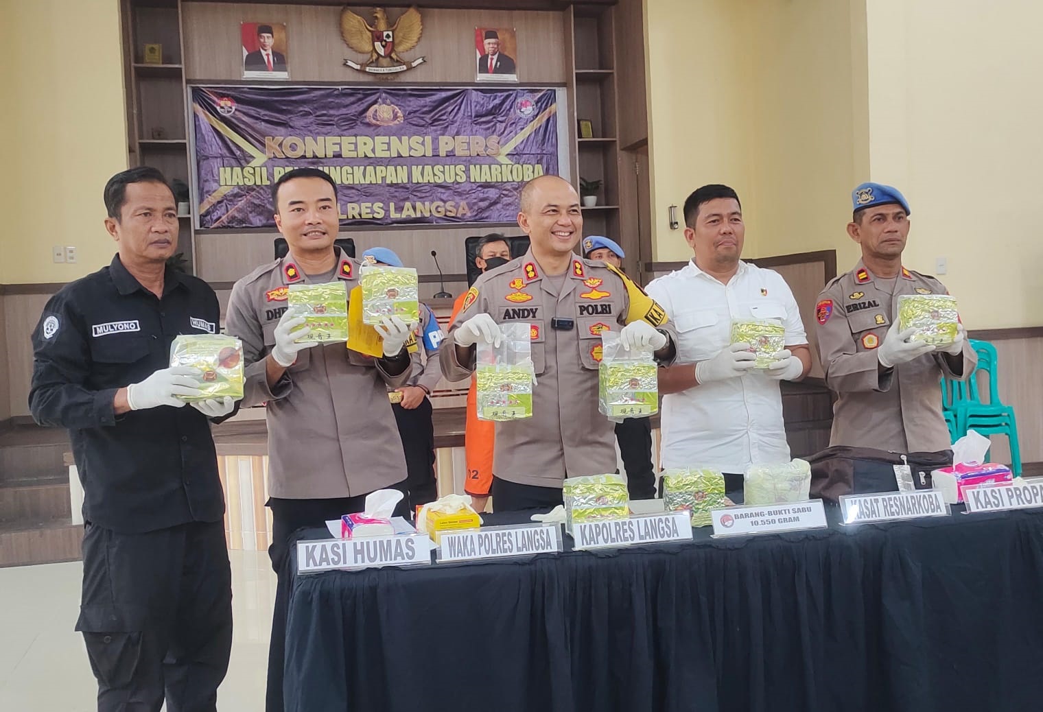 Kapolres Langsa, AKBP Andy Rahmansyah, SIK, SH didampingi Wakapolres Kompol Dheny Firmandika, S.AB. SIK, Kasat Resnarkoba Polres Langsa, AKP Mulyadi, SH. MH, Kasi Humas, Iptu Tri Mulyono mengatakan, penangkapan tersangka berdasarkan informasi dari masyarakat bahwa ada jaringan pengedar narkotika jenis sabu lintas provinsi dalam jumlah yang besar yang akan melewati wilayah hukum Polres Langsa.