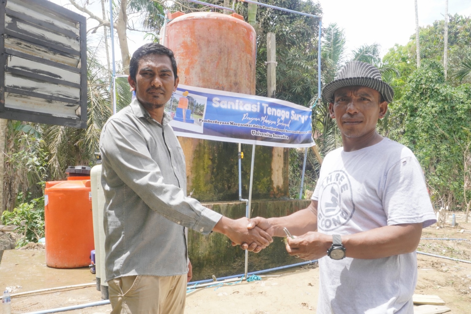 Ketua tim dosen pembimbing lapangan, Dr. Fazri, S.T., M.T dalam keterangannya kepada wartawan, Selasa (03/03/2026) mengatakan, program ini difokuskan pada pemulihan pascabencana melalui dua intervensi utama, yakni 1 unit sistem air bersih/sanitasi bertenaga surya untuk pemulihan layanan dasar, serta 4 kolam bioflok yang telah diisi ikan lele untuk penguatan penghidupan warga.