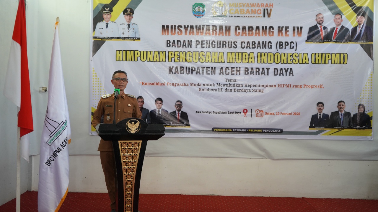 BLANGPIDIE (Waspada.id) : Musyawarah Cabang (Muscab) IV, Badan Pengurus Cabang (BPC) Himpunan Pengusaha Muda Indonesia (HIPMI), Kabupaten Aceh Barat Daya (Abdya) resmi dibuka di aula Pendopo Bupati Abdya, Selasa (10/2).